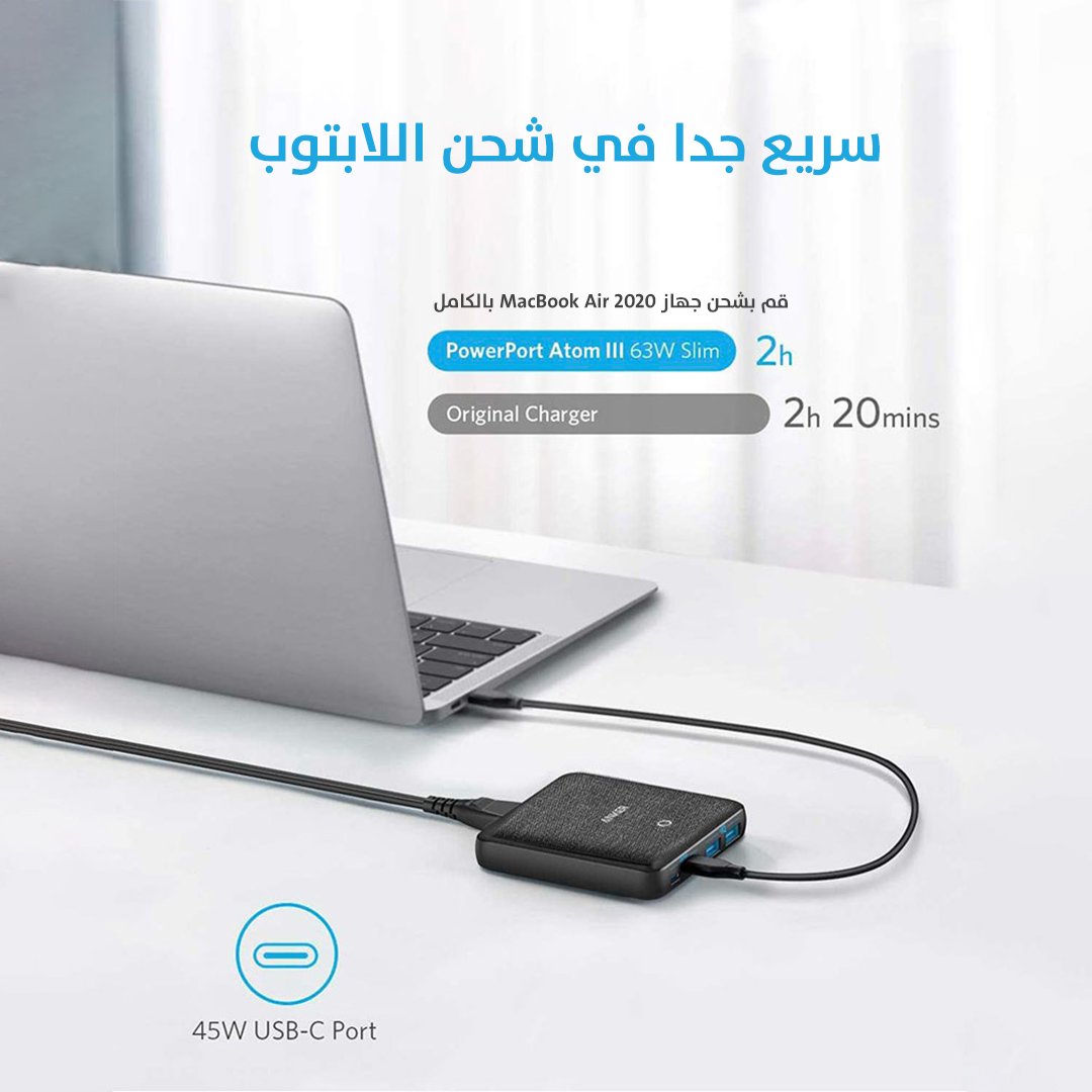 مناسب لشحن أجهزتك المحمولة والابتوب بنفس الوقت مع ثبات قوة الشحن